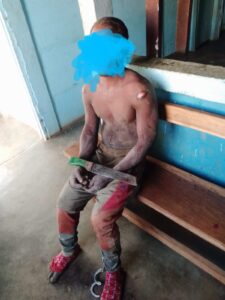 De acordo com a Polícia Nacional, o incidente ocorreu na madrugada de 9 de fevereiro, quando Simão tentava mediar o conflito. Furioso, o autor atacou a vítima com uma faca, quase esquartejando o braço, antes de fugir para um matagal.