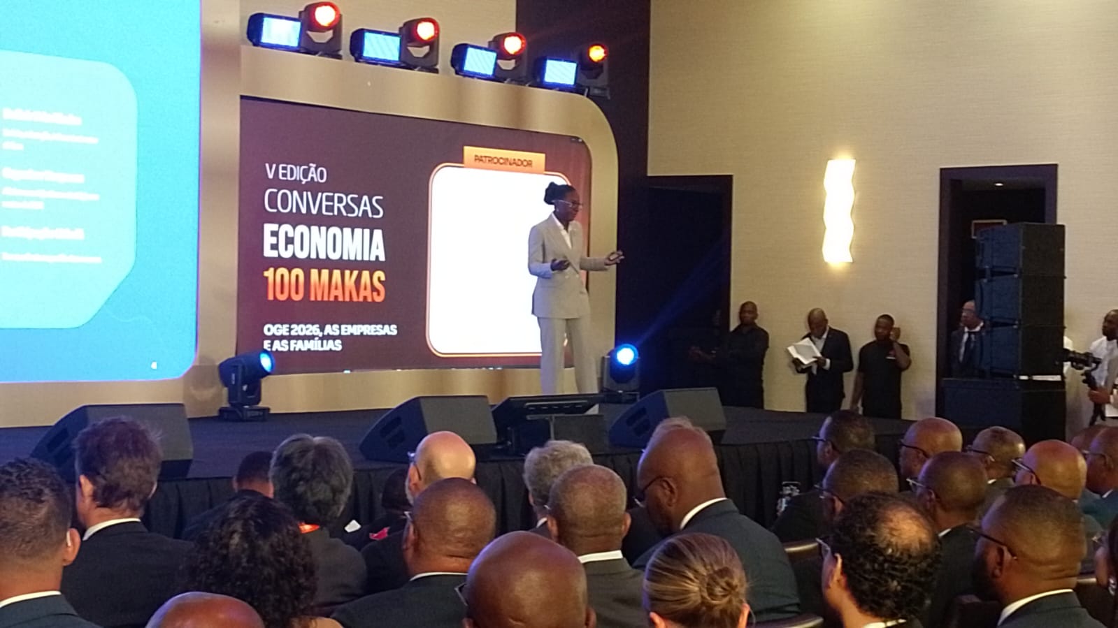 A ministra das Finanças, Vera Daves de Sousa, esclarece neste momento, em Luanda, o Orçamento Geral do Estado (OGE) 2026, durante a quinta edição do Conversas “Economia 100 Makas”.